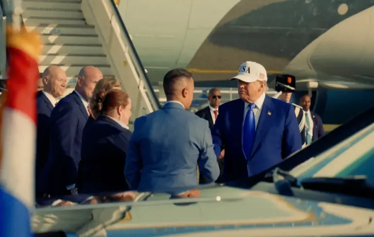 “Татусь вдома… Гей, гей, гей, татусь. Президент Дональд Трамп взяв участь у саміті НАТО в Гаазі, Нідерланди”, — підписав відео Білий дім.