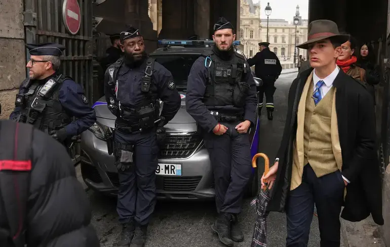 Хто цей елегантний чоловік у застебнутому жилеті, тренчі та фетровому капелюсі, який стоїть поруч із трьома поліцейськими біля входу до музею? Може, це детектив, натхненний образом Шерлока Холмса, призначений розслідувати злочин? Або ж штучно створене зображення? Чи просто перехожий, який виглядає надто по-французьки?