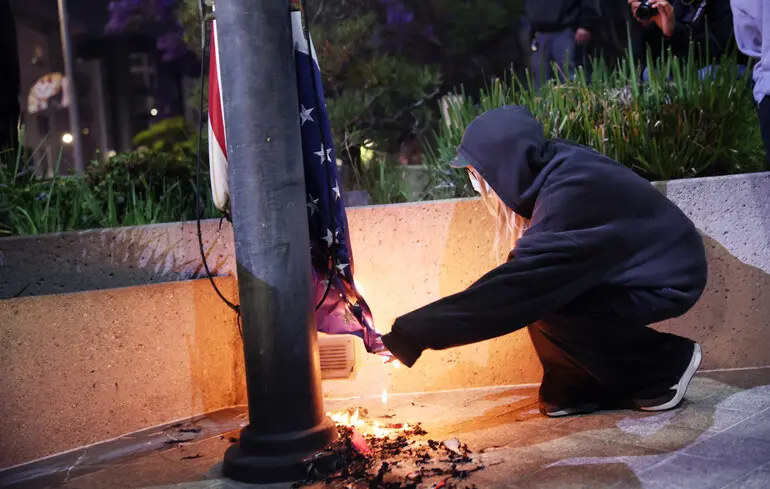 “Це тварини, але вони з гордістю носять прапори інших країн. Вони не носять американський прапор. Вони тільки спалюють його, ‒ сказав президент, звертаючись до присутніх. ‒ Люди, які спалюють американський прапор, повинні сісти до в’язниці на один рік. Побачимо, чи зможемо ми це зробити. Ми спробуємо. Ми вже працюємо з деякими сенаторами”.