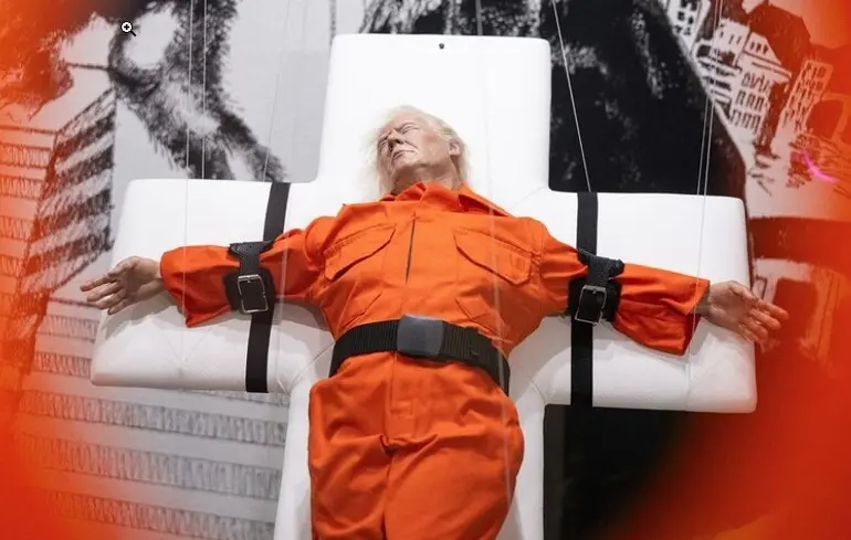 У Базелі (Швейцарія) представили скульптуру, що зображає Дональда Трампа розп’ятим на хресті в помаранчевій тюремній робі. Провокаційний твір британського художника Мейсона Сторма під назвою “Святий або грішник” виставлено в художній галереї Gleis 4. Це друга спроба: перший показ, на Центральному вокзалі, просто побоялися здійснити, боячись суспільного резонансу, повідомляє 6 листопада Euronews.