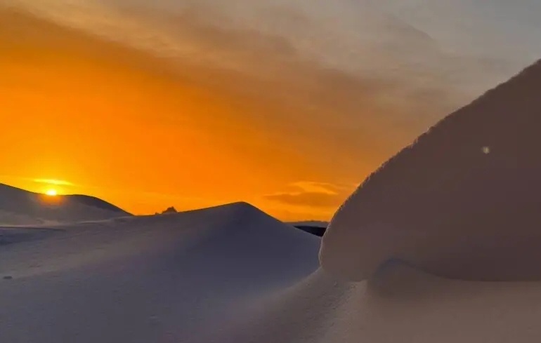 Сніговий карниз формується завдяки вітру, створюючи своєрідні “застиглі хвилі”.